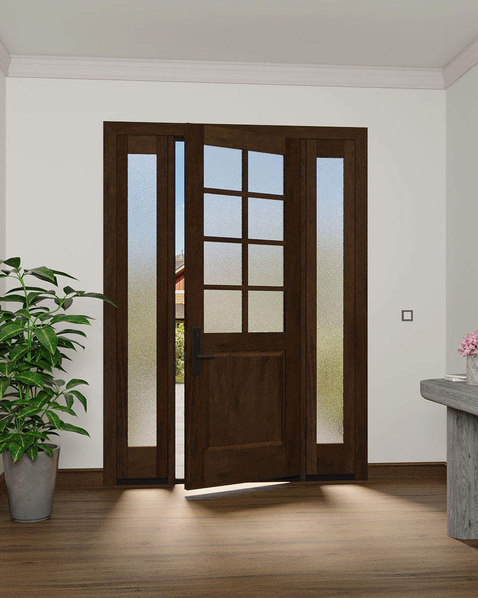 Mahogany 1/2 Lite, 8 Lite SDL 1 Panel Modern Farmhouse Shaker Double Door, Sidelites|G5008-SH