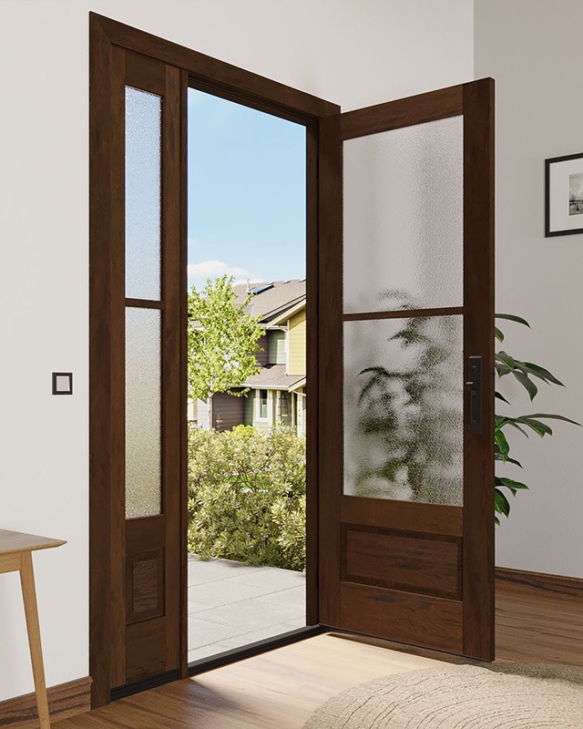Mahogany 3/4 Lite, 2 Lite SDL 1 Panel Modern Farmhouse Shaker Single Door, Sidelite|G7502-SH