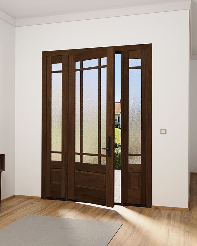 Mahogany 3/4 Lite, 9 Lite Prairie SDL 1 Panel Modern Farmhouse Shaker Single Door, Sidelites|G7509-Prairie-SH