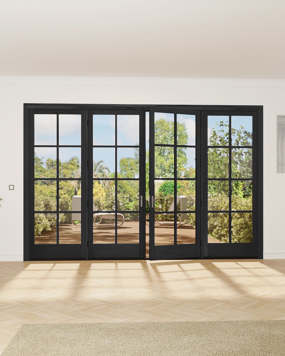 Mahogany Full Lite, 8 Lite SDL Contemporary Modern Narrow Profile Shaker Quadruple Door