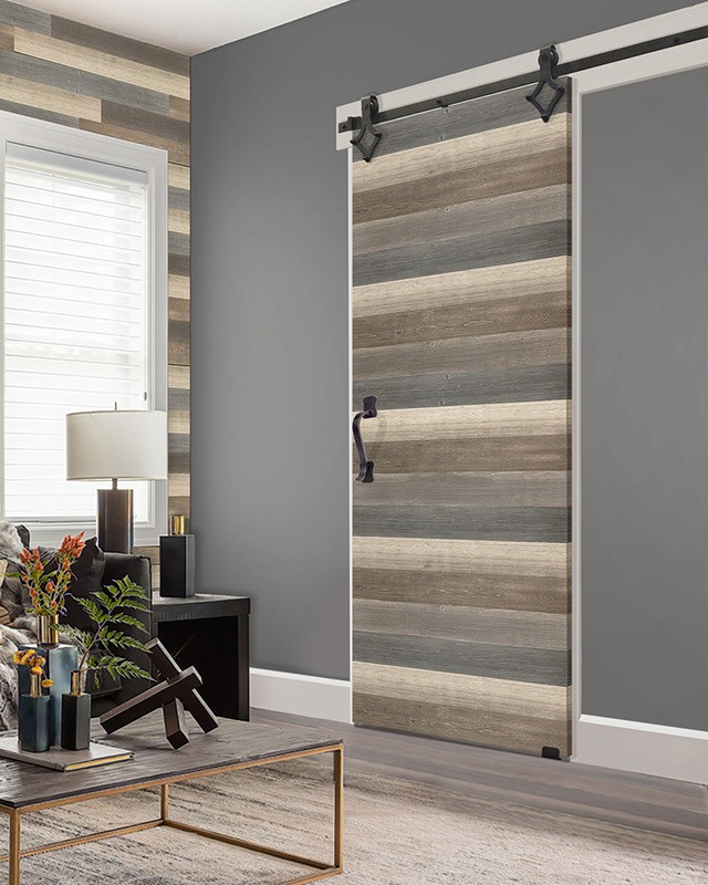 The Rustic Farmhouse Door Collection features rustic wood planks adhered to one or both sides of a solid door. Produced using an engineered door core, these barn doors are dense, heavy and long lasting. The added real wood planks are produced from strong Canadian pine and are available in eight distinctive colors.