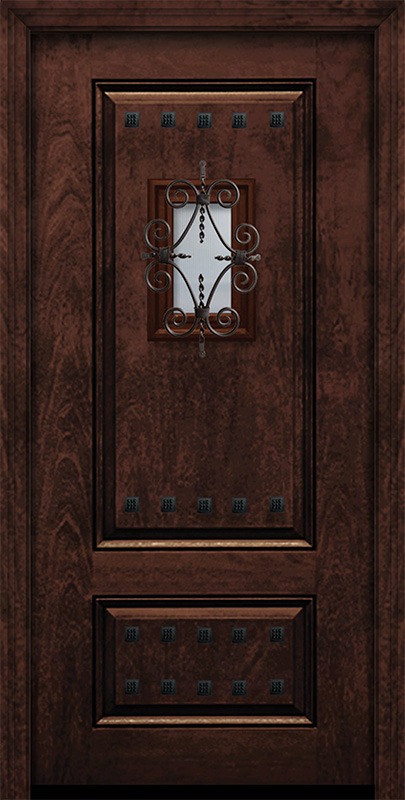 IMPACT | 80" 2 Panel Square Mahogany Door with Speakeasy & Clavos