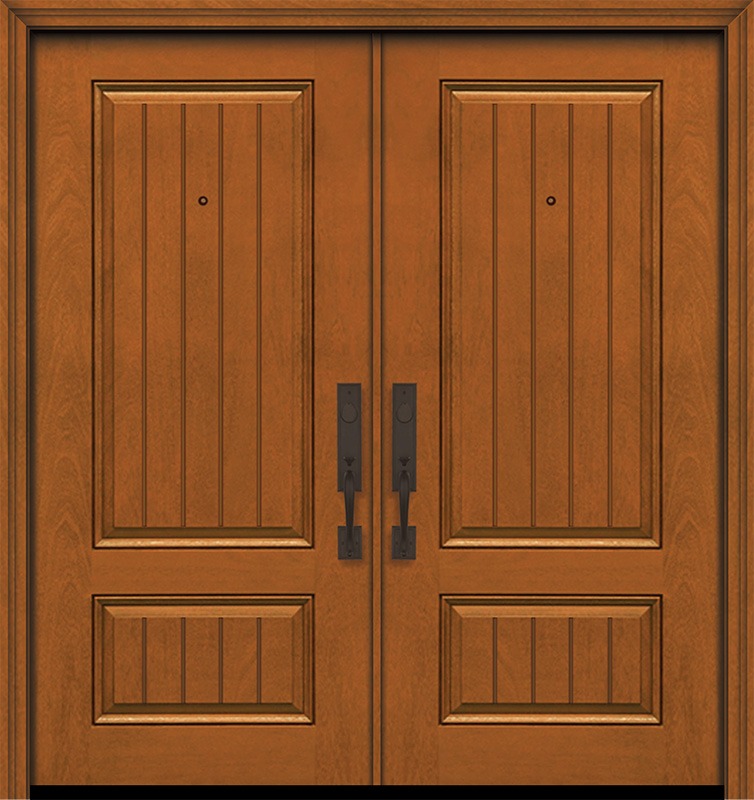 IMPACT | 80" Double 2 Panel Square V-Grooved Mahogany Door