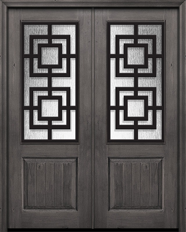 IMPACT | 96" Prefinished Distressed Knotty Alder Double 1 Panel 2/3 Lite Moderna Steel Grille Door