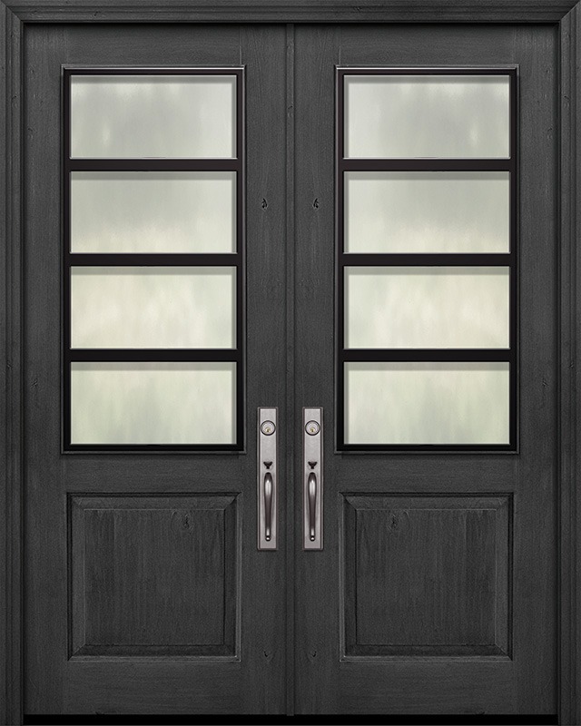 IMPACT | 96" Prefinished Distressed Knotty Alder Double 1 Panel 2/3 Lite Urban Steel Grille Door