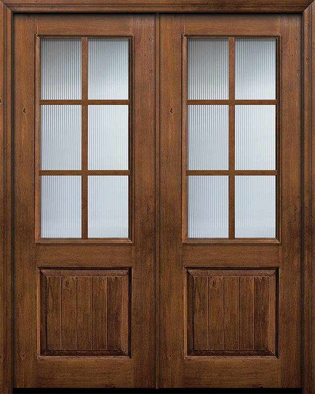 IMPACT | 96" Prefinished Distressed Knotty Alder Double 2/3 Lite 1 Panel 6 Lite SDL Door