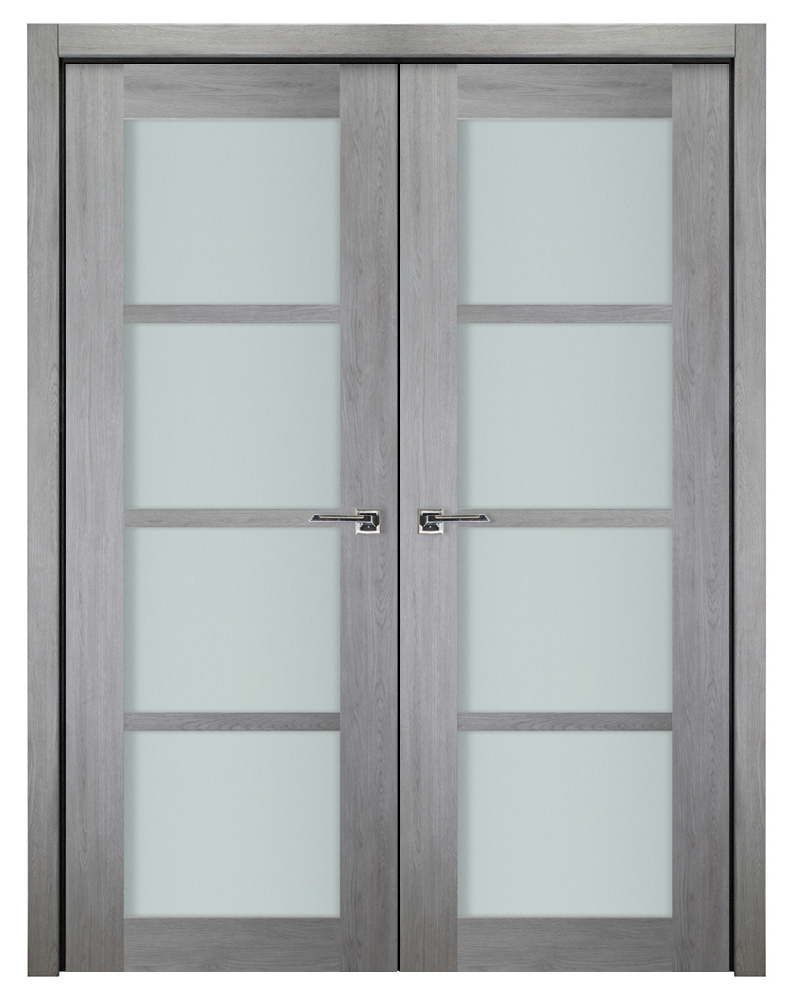 Italia French 4-Lite, Light Grey Prefinished Interior Double Door