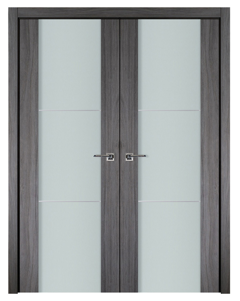 Italia Vetro, Laminated Glass Swiss Elm 2H, Prefinished Interior Double Door