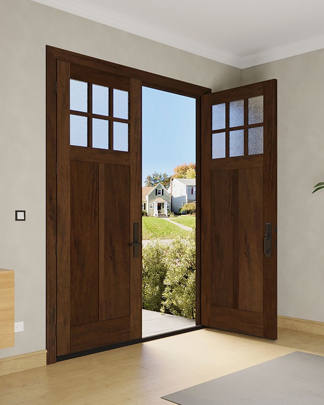 Mahogany Craftsman 6 Lite, Top View SDL 2 Panel Shaker Double Door