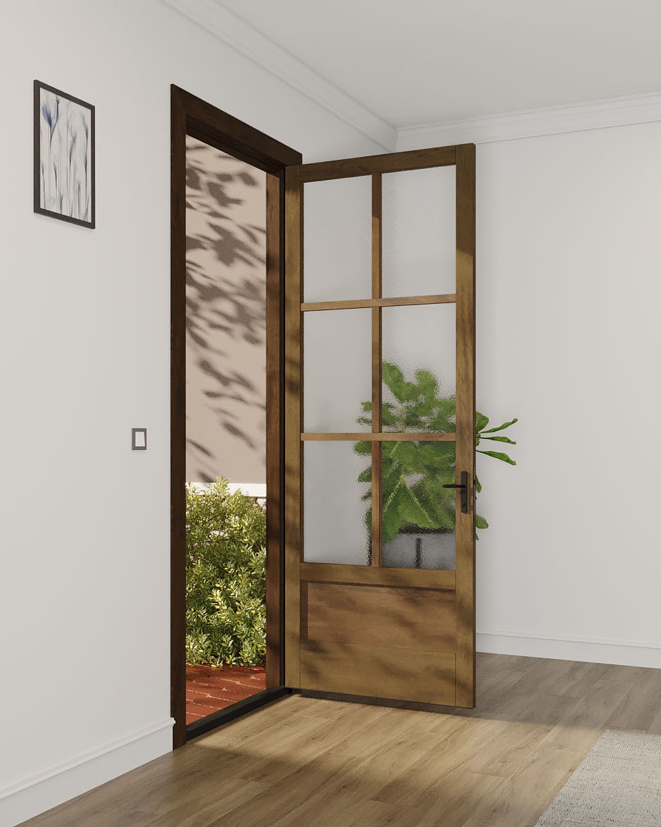 Mahogany 4 Lite 3/4 Lite SDL 1 Panel Contemporary Modern Shaker Single Door|G7506-SLK-SH