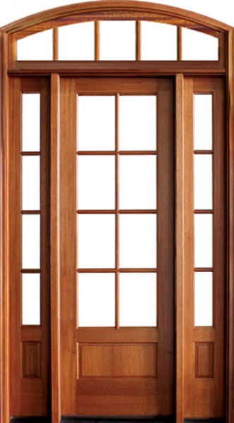 96" Mahogany Alexandria TDL 8 Lite Single Door/2Sidelite & Segment Transom