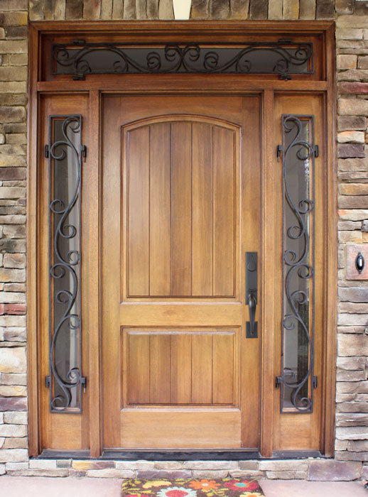 80" Mahogany Decatur Hendersonville Single Door/2Sidelite & Rec Transom with Burlwood Iron