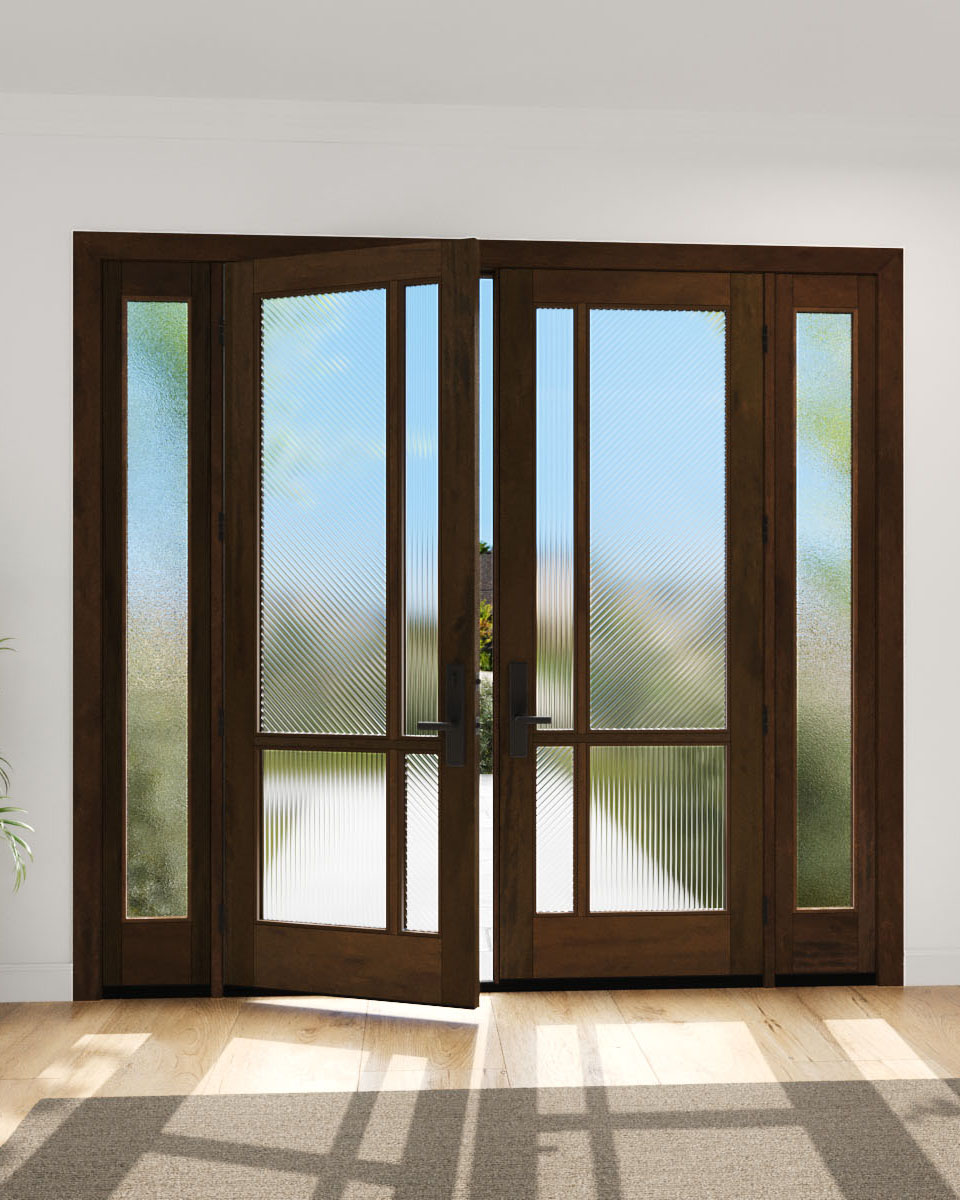 Mahogany Full Lite Artistic Lite Designer Contemporary Modern Shaker Double Door, Sidelites|G1164-W