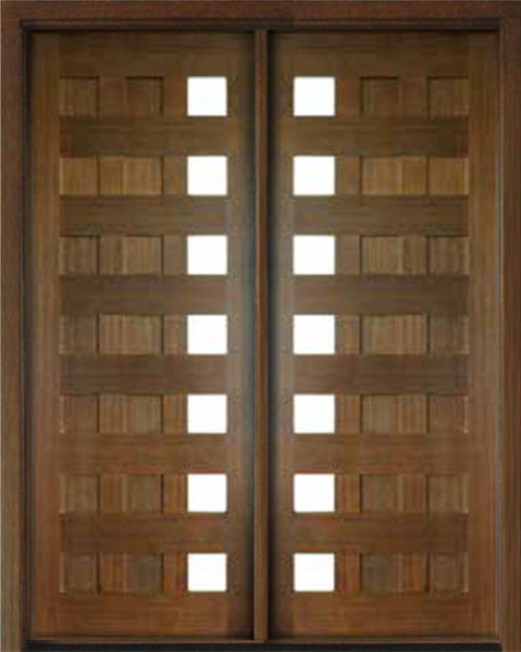 Mahogany Milan 14 Panel 7 Lite Impact Double Door