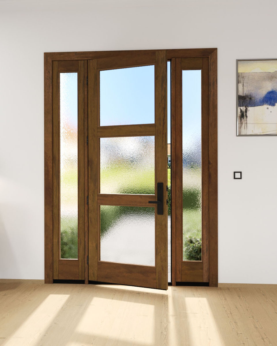 Mahogany Full Lite, 3 Lite Modern Shaker Single Door, Sidelites|G301-SH-SH
