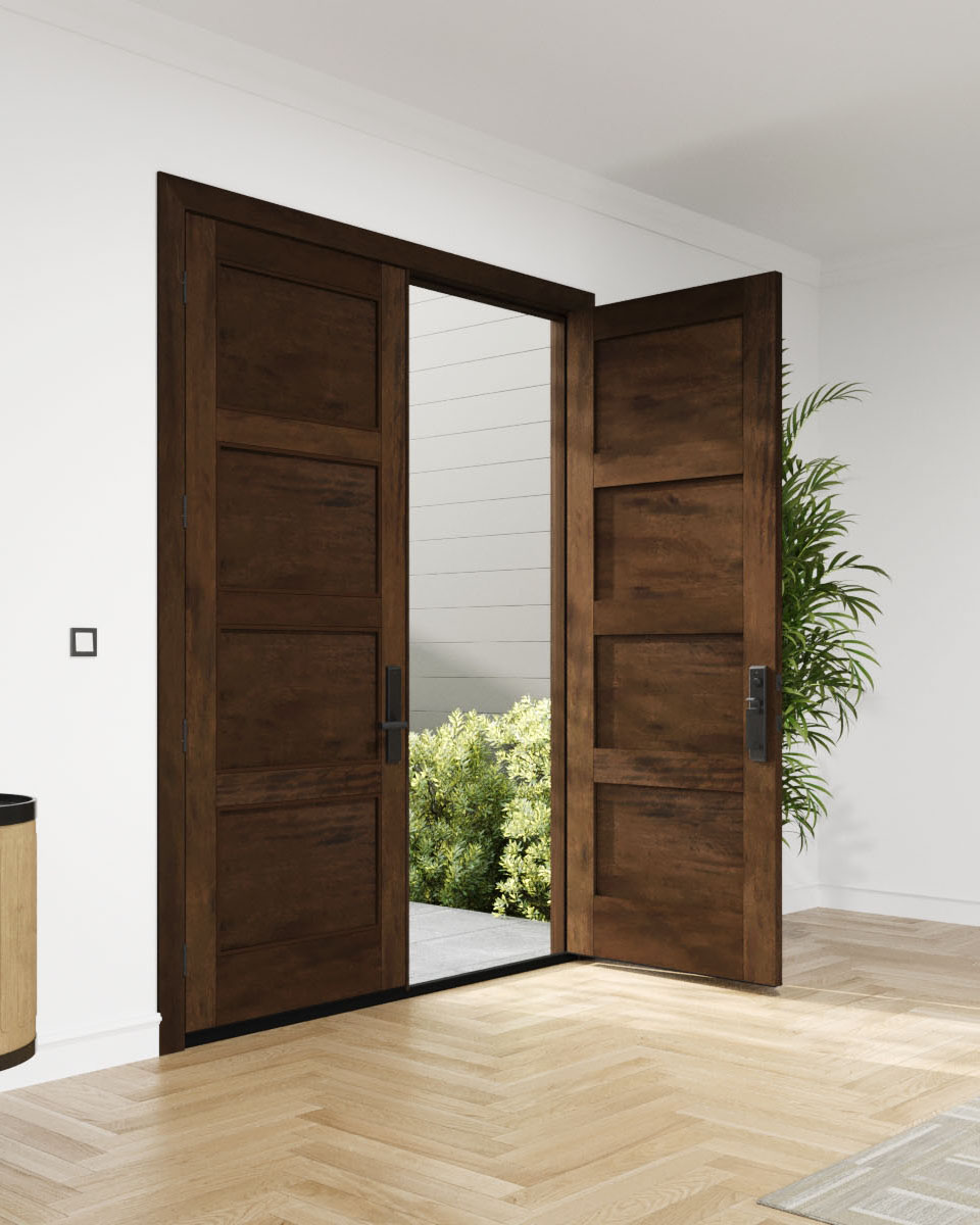 Mahogany Modern 4 Panel Shaker Solid Double Door|P401-SH-SH