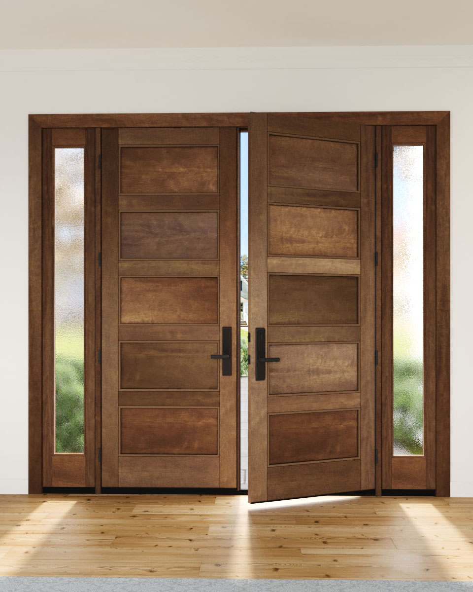 Mahogany Modern 5 Panel Shaker Solid Double Door, Sidelites|P501-SH-SH