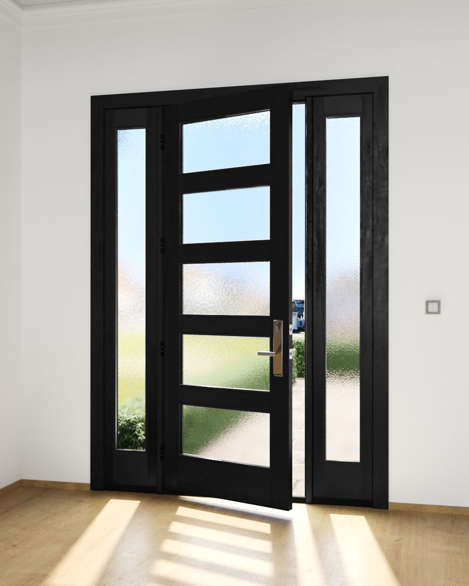 Mahogany Full Lite, 5 Lite Modern Shaker Single Door, Sidelites|G501-SH-SH