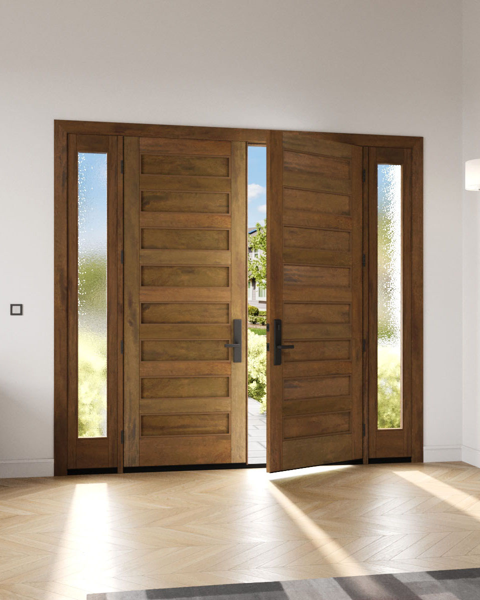 Mahogany Modern Slim Panel Shaker Solid Double Door, Sidelites|P101-SLM-SH