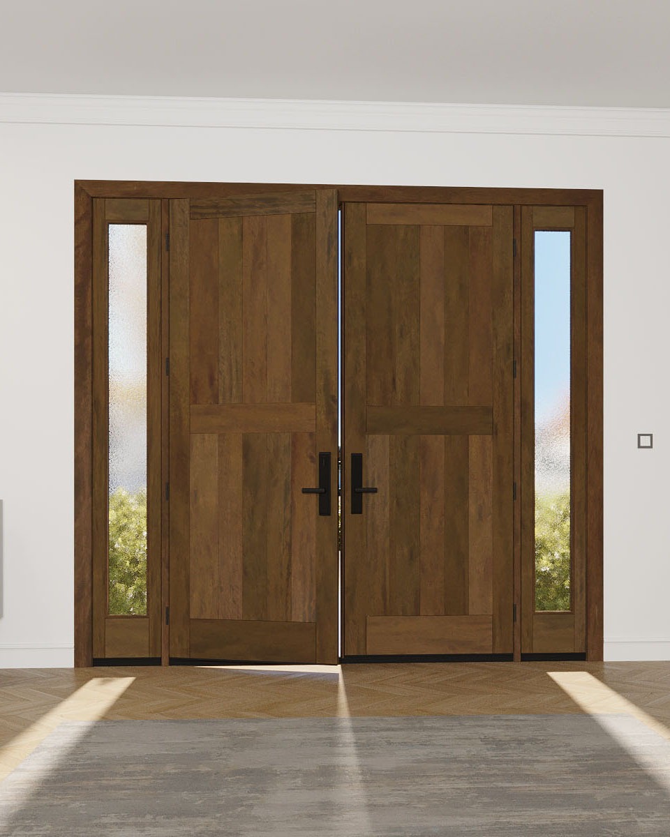 Mahogany Vertical Plank 2 panel Modular Modern Shaker Solid Double Door, Sidelites|MRV201-SW-SH