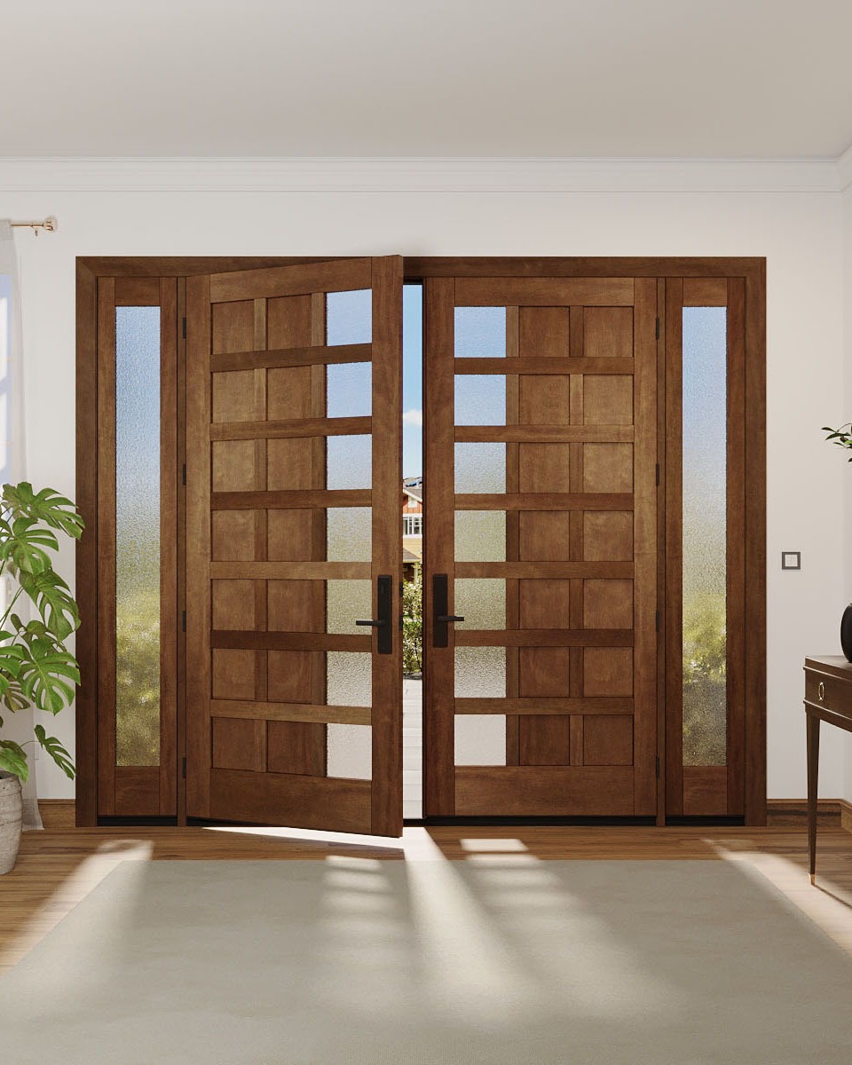 Mahogany Artistic Lite Modern 7+ Panel Shaker Double Door, Sidelites