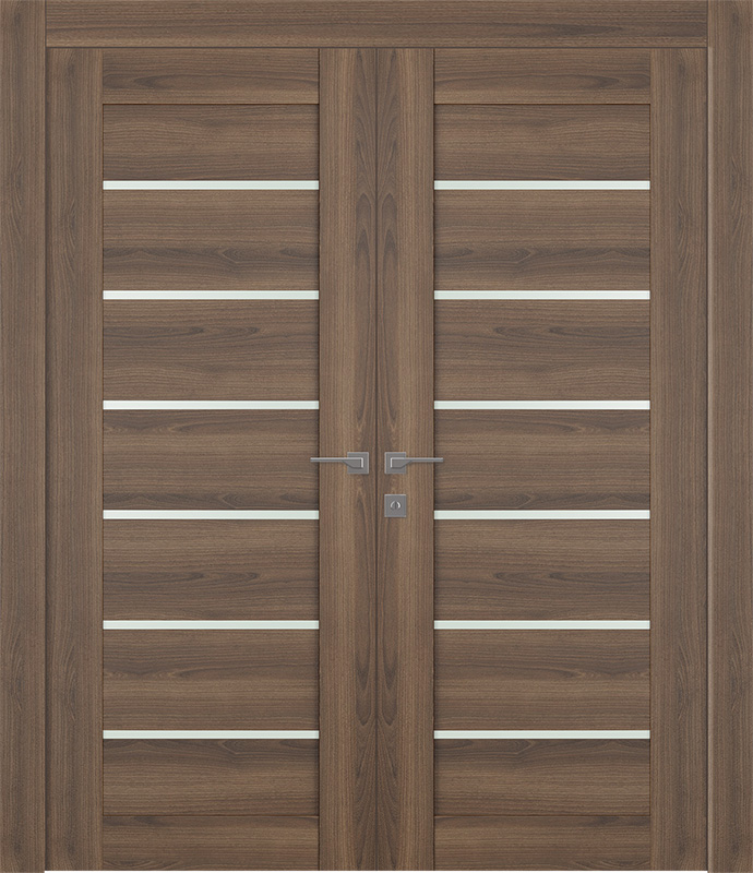 Prefinished Avon 07-02 Vetro Pecan Nutwood Modern Interior Double Door