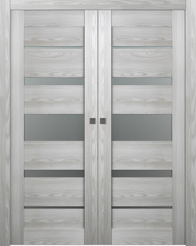 Prefinished Avon 07-03 Vetro Ribeira Ash Modern Interior Double Pocket Door