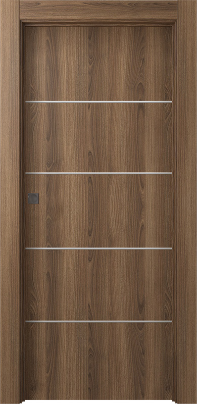 Prefinished Optima 4H Pecan Nutwood Modern Interior Single Pocket Door