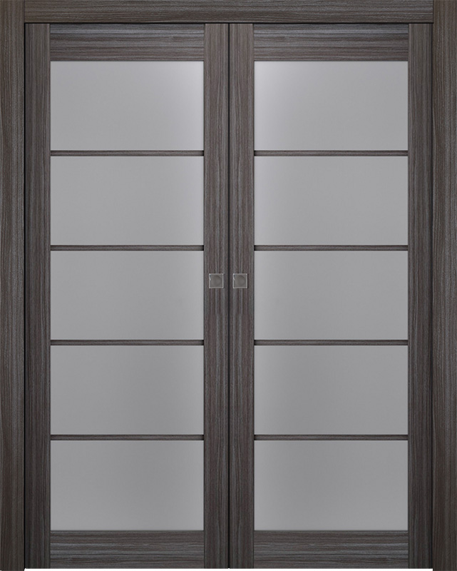 Prefinished Palladio 5 Lite Vetro Gray Oak Modern Interior Double Pocket Door