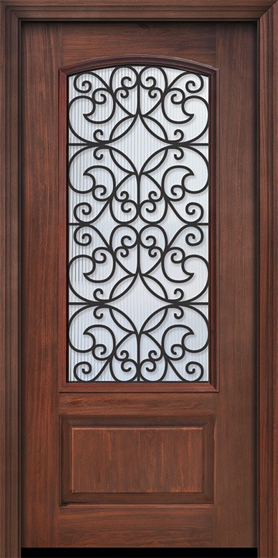 Pro 80" 1 Panel 3/4 Arch Lite Florence GBG Mahogany Door