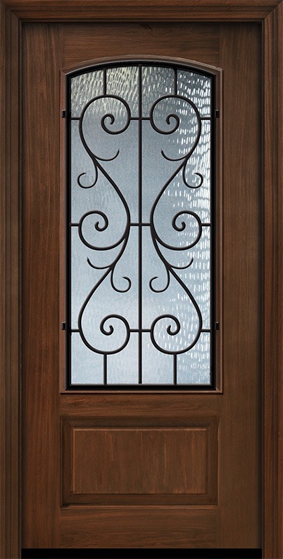 Pro 80" 1 Panel 3/4 Arch Lite St Charles Wrought Iron Mahogany Door