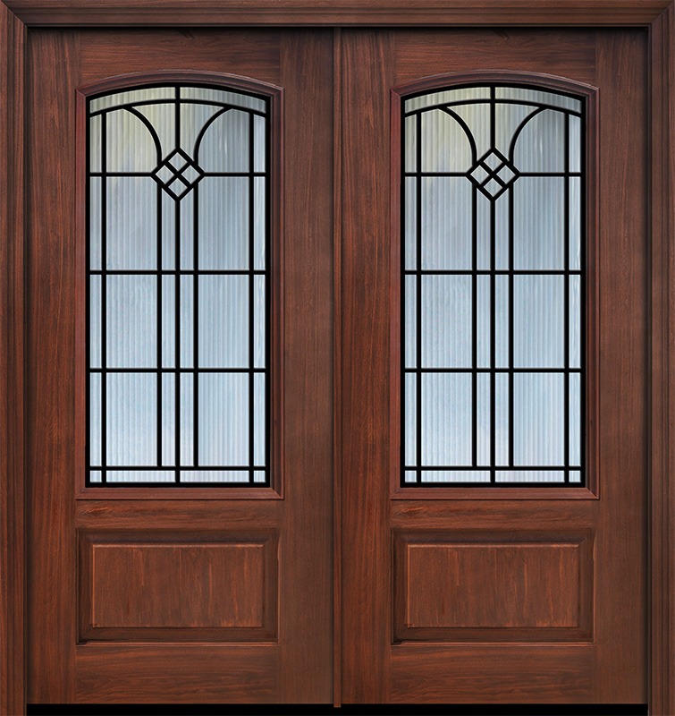 Pro 80" Double 1 Panel 3/4 Arch Lite Cantania GBG Mahogany Door