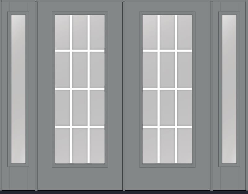80 Low-E Colonial 12 Lite Flat Bar GBG Smooth Full Lite Fiberglass Double Door,Sidelites , WBD Impact