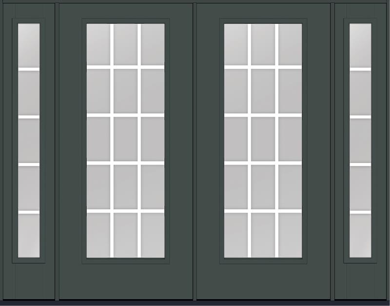 80 Low-E Colonial 15 Lite Flat Bar GBG Smooth Full Lite Fiberglass Double Door,Sidelites , WBD Impact