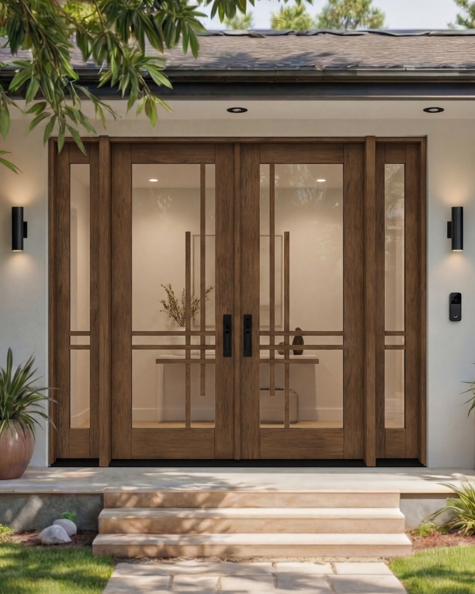 TALON l Mahogany TALON Prairie SDL Mid-Century Modern Shaker Double Door, Sidelites