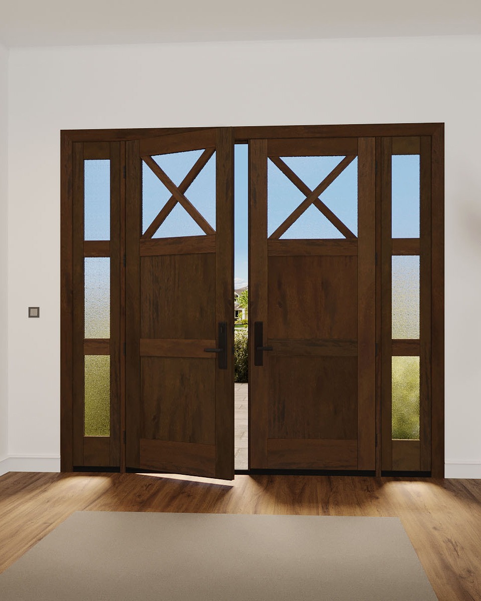 Mahogany Whickham Craftsman Top View Designer SDL 2 Panel Shaker Double Door, Sidelites